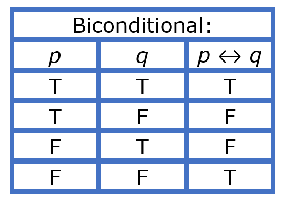 - If S1 and S2 are sentences, is a sentence (biconditional, IFF)