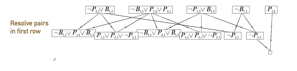 - Convert sentecnes in KB to conjunctive noirmal form (CNF)